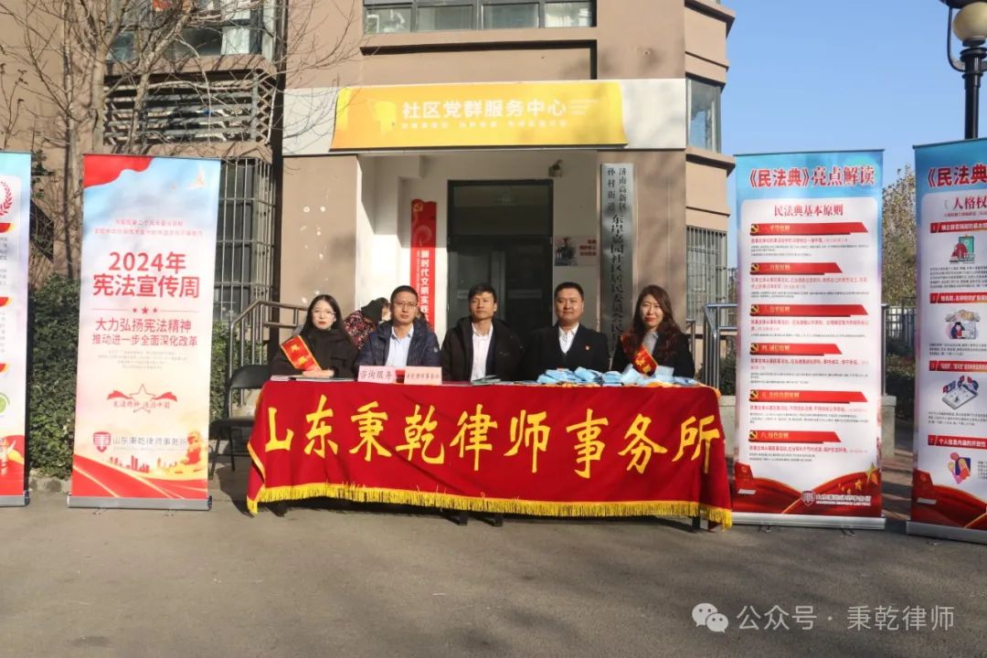 为进一步弘扬宪法精神,维护宪法权威,宣传宪法知识,提升全民法治意识,2024年12月16日,山东秉乾律师事务所来到济南市高新区孙村街道东岸嘉园社区,参加由济南市食品药品检验检测中心联合组织的“送法进社区,普法零距离”法治宣传月集中宣传活动。